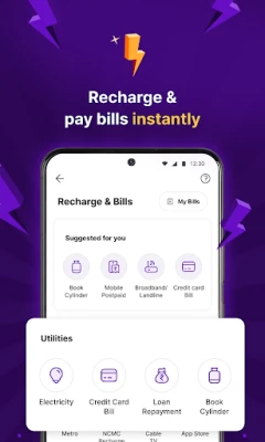 দৈনন্দিন জীবনের প্রতিটি বিল পরিশোধ এখন আরও সহজ। ফোনপে (PhonePe) অ্যাপ ব্যবহার করে মোবাইল রিচার্জ (Jio, Vodafone, Airtel), DTH রিচার্জ (Tata Sky, Airtel Direct) এবং ক্রেডিট কার্ড, ল্যান্ডলাইন, বিদ্যুৎ, জল বা ব্রডব্যান্ডের মতো সমস্ত বিল সহজেই পরিশোধ করুন। ১ লক্ষেরও বেশি অনলাইন ও অফলাইন আউটলেটে এবং ফোনপে (PhonePe) অ্যাপ জুড়ে সহজ পেমেন্টের জন্য ফোনপে গিফট কার্ড কিনতে পারেন। আপনার পছন্দের শপিং ওয়েবসাইটগুলি থেকে আসা রিফান্ডগুলিও ফোনপে-এর মাধ্যমে ট্র্যাক ও পরিচালনা করা যায়, যা আপনার সম্পূর্ণ আর্থিক নিয়ন্ত্রণ নিশ্চিত করে। ফোনপে ইন্টারনেট ব্যাঙ্কিংয়ের চেয়েও নিরাপদ ও উন্নত পরিষেবা প্রদান করে আপনার জীবনকে আরও সহজ করে তোলে।