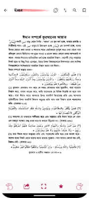 এই অ্যাপে রয়েছে ১৩৭টি সুচিন্তিত বিষয়শ্রেণী, যা ব্যবহারকারীদের বিভিন্ন প্রেক্ষাপটে প্রাসঙ্গিক তথ্য দ্রুত খুঁজে পেতে সাহায্য করে। আপনার পড়ার অভিজ্ঞতাকে আরও উন্নত করতে এতে সংযোজিত হয়েছে একাধিক আকর্ষণীয় বৈশিষ্ট্য। শেষ পড়া পাতা স্বয়ংক্রিয়ভাবে সংরক্ষণ হওয়ার সুবিধা, পছন্দের সূরার জন্য বুকমার্ক করার অপশন এবং যেকোনো গুরুত্বপূর্ণ পাতাকে পিন করে রাখার ব্যবস্থা ব্যবহারকে করে তোলে নিরবচ্ছিন্ন ও ব্যক্তিগত। এছাড়াও, স্বাচ্ছন্দ্যে পড়ার জন্য রয়েছে স্পর্শের মাধ্যমে সম্পূর্ণ স্ক্রিন মোড, চোখের আরামের জন্য নাইট মোড এবং বইয়ের মতো অনুভূমিক বা সাধারণ উল্লম্ব স্ক্রলিং মোডে পড়ার বিকল্প।