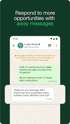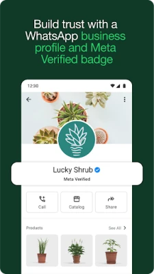 এই প্ল্যাটফর্ম ব্যবহার করে গ্রাহকদের মধ্যে আপনার ব্যবসার একটি পেশাদারী চিত্র গড়ে তুলুন এবং তাদের সঙ্গে দীর্ঘস্থায়ী সম্পর্ক স্থাপন করুন। প্রতিক্রিয়াশীল গ্রাহক সহায়তা প্রদান করে বিশ্বাসযোগ্যতা বৃদ্ধি করুন। আপনার পণ্য বা পরিষেবার ক্যাটালগ তৈরি করে সম্ভাব্য গ্রাহকদের কাছে আপনার সম্পূর্ণ পরিসর তুলে ধরুন। হোয়াটসঅ্যাপে ক্লিকযোগ্য বিজ্ঞাপন তৈরি করে নতুন গ্রাহকদের কাছে পৌঁছান এবং সুনির্দিষ্ট প্রস্তাবনার মাধ্যমে বিক্রয় বৃদ্ধি করুন। Meta Verified-এ সাবস্ক্রাইব করে আপনার ব্যবসার সত্যতা এবং বিশ্বাসযোগ্যতা আরও বাড়িয়ে তুলুন, যা বিশ্বব্যাপী শীঘ্রই উপলব্ধ হবে। একাধিক ডিভাইস থেকে আপনার অ্যাকাউন্ট পরিচালনা করার সুবিধা রয়েছে, যা আপনার ব্যবসার নমনীয়তা বাড়ায়।